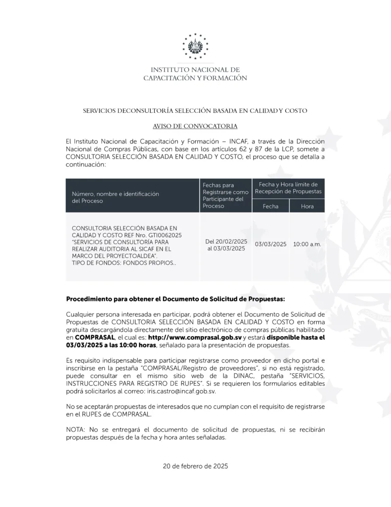 03/03/2025 No. GTI0062025 “Contratación servicios de infraestructura en la nube para las plataformas web del INCAF”