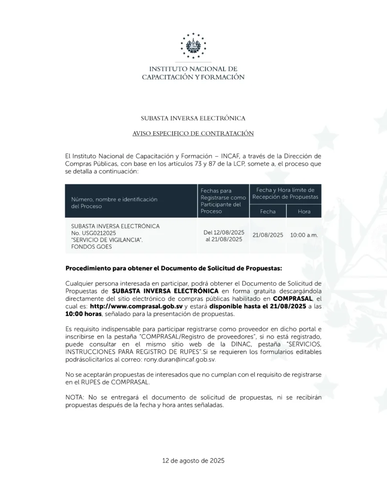 12/08/2025 No. USG0212025 “Servicio de vigilancia”