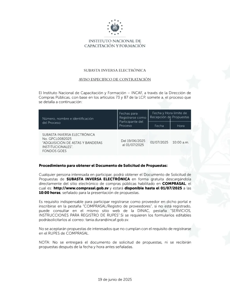 19/06/2025 No. GPCL0082025 “Adquisición de astas y banderas institucionales”