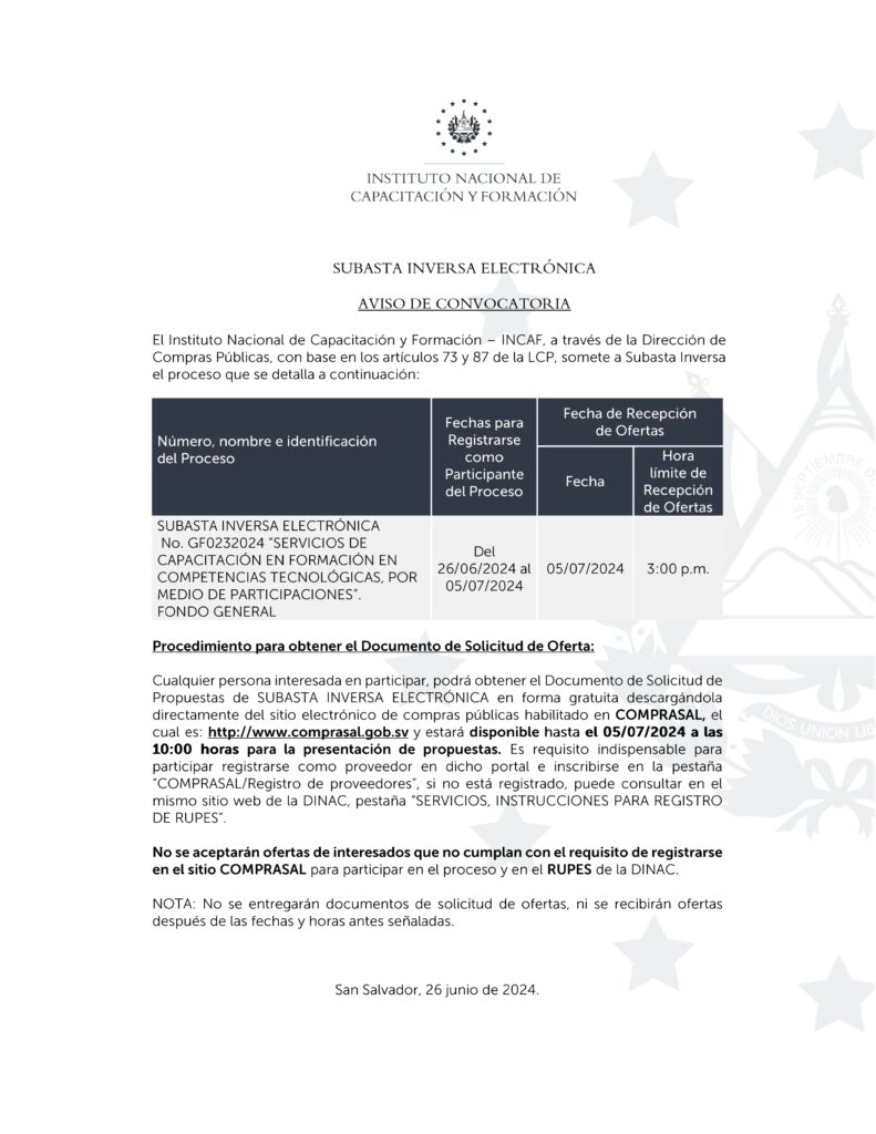 No. GF0232024 “Servicios de capacitación en formación en competencias tecnológicas, por medio de participaciones”.