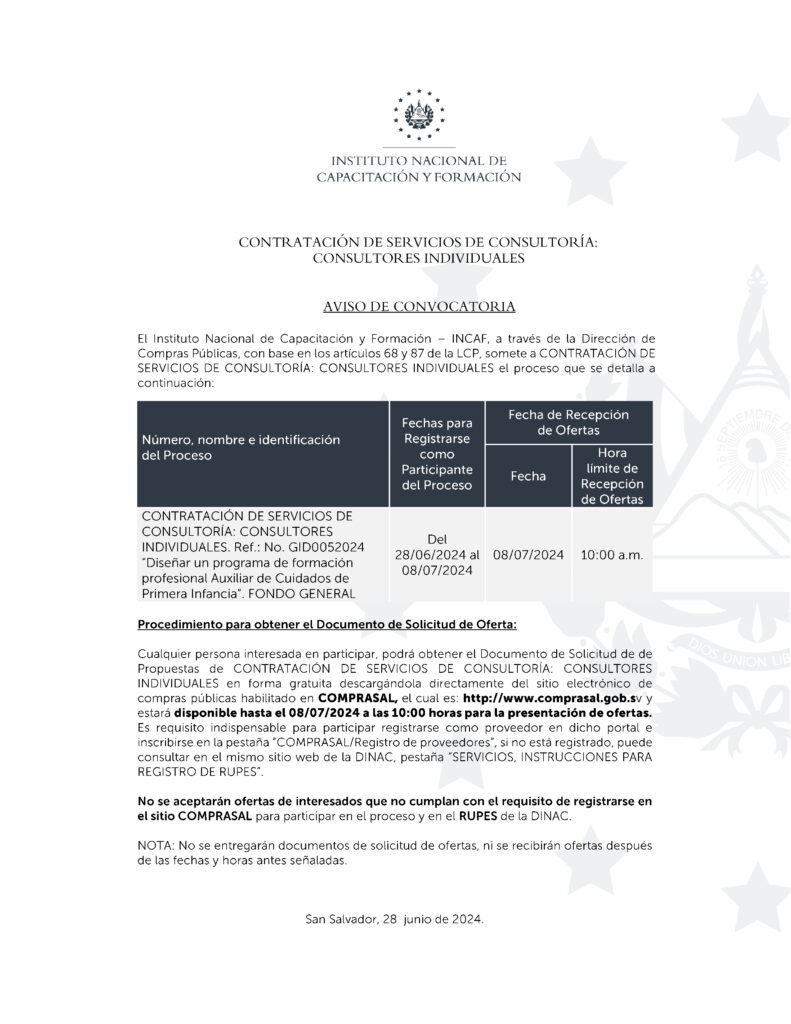 No. GID0052024 “Diseñar un programa de formación profesional Auxiliar de Cuidados de Primera Infancia”.